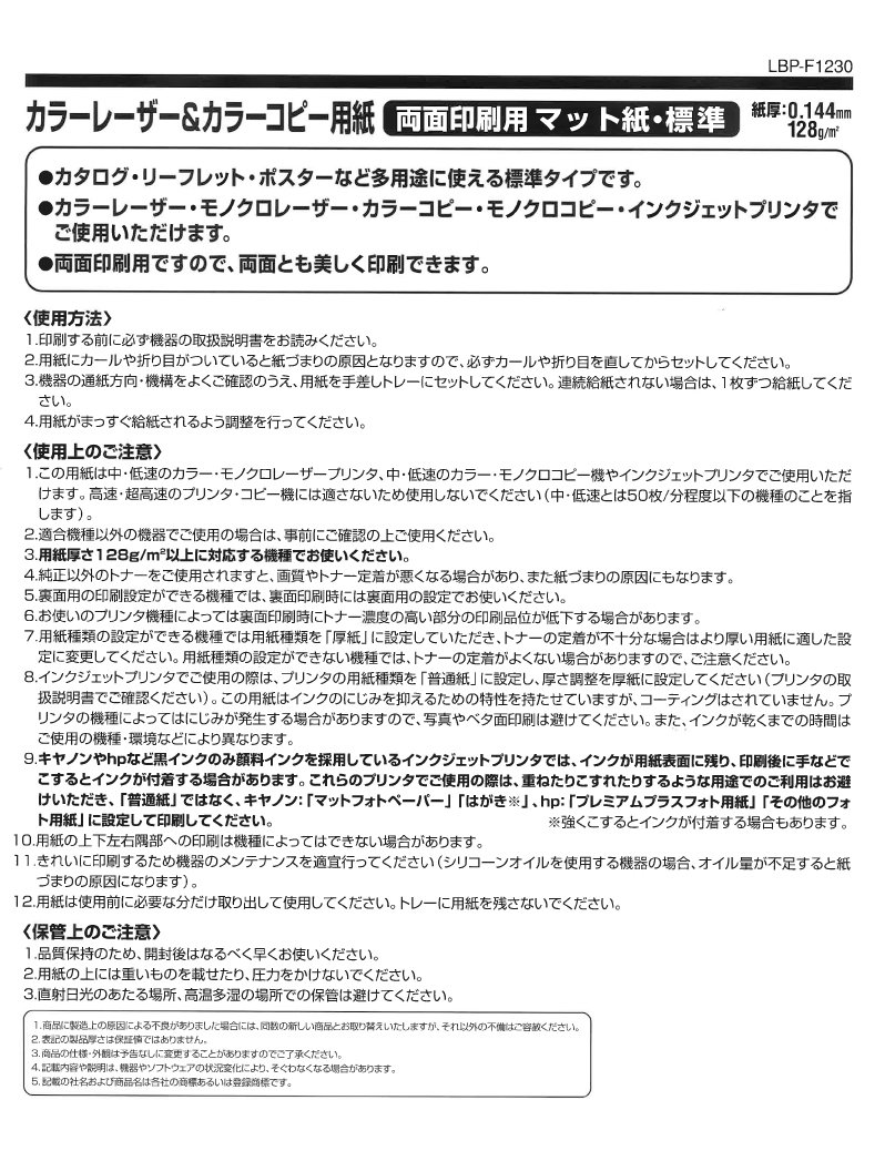 LBP-F1230 100 pieces Kokuyo color laser and color copy paper double-sided printing matte paper A3 standard (japan import)