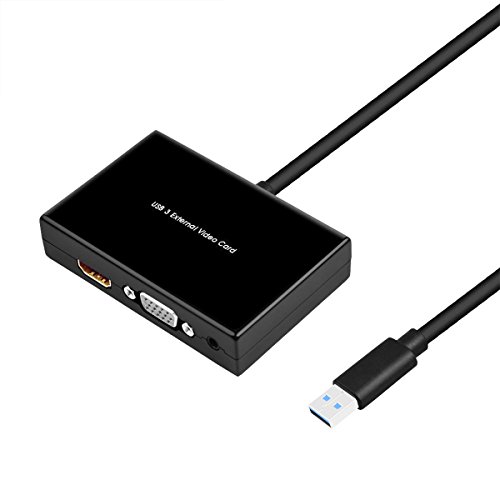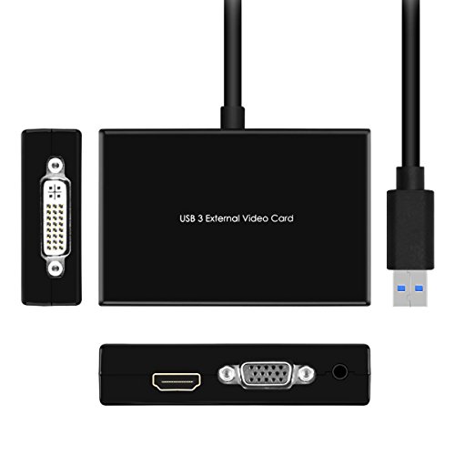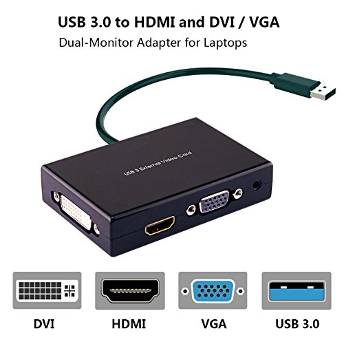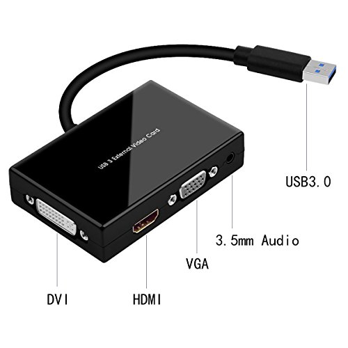 USB 3.0 to HDMI-VGA-DVI Monitor External Video Card Adapter,Rongyuxuan Monitor Outputs HDMI DVI-D and VGA,Support Via 3.5mm Stereo Mini-jack Full HD1920x1080p(Black)
