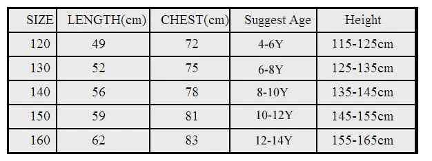 Size: 120 cm-160 cm, 4-5-6-7-8-9-10-11-12-13-14