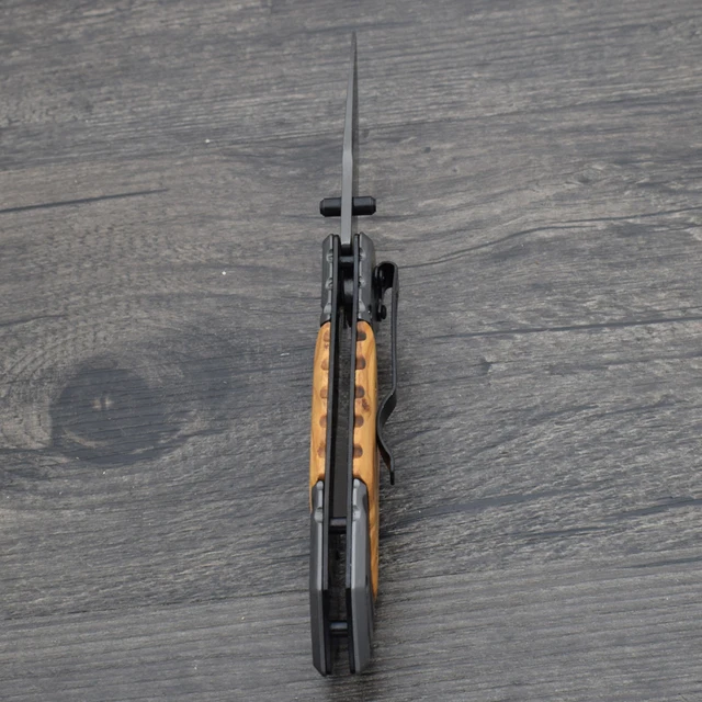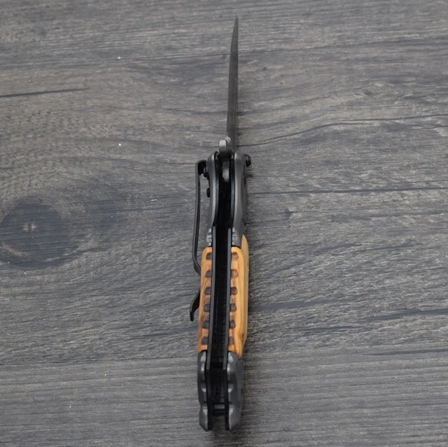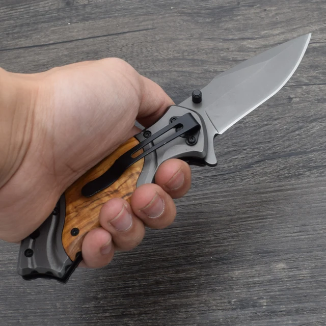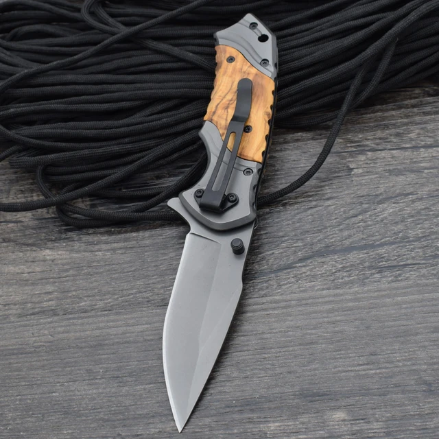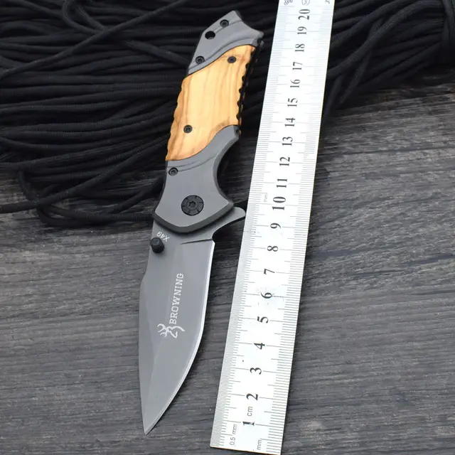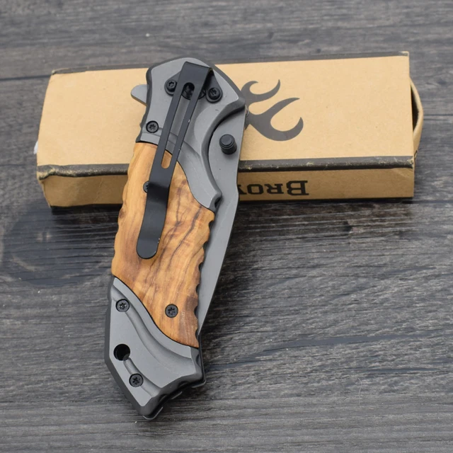 | [해외] 생존 칼 브라우닝 포켓 접는 440C 스틸 블레이드 칼 스틸 + 나무 핸들 사냥 전술 나이프 캠핑 야외 도구 |
