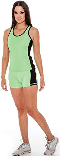 Enimay® Women's Colored Two-Piece Matching Gym Outfit Workout Yoga Tight Shorts Lime Green | Black Medium