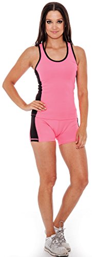 Enimay® Women's Colored Two-Piece Matching Gym Outfit Workout Yoga Tight Shorts Pink | Black Medium