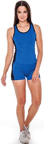 Enimay® Women's Colored Two-Piece Matching Gym Outfit Workout Yoga Tight Shorts Royal Blue | Black Medium