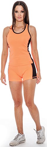 Enimay® Women's Colored Two-Piece Matching Gym Outfit Workout Yoga Tight Shorts Orange | Black Medium