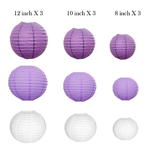 Sonnis Paper Lanterns 12"10" 8"Round lanterns for Birthday Wedding Christmas Party Decorations (9pack)Purple