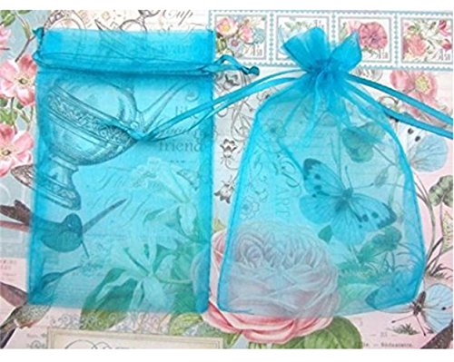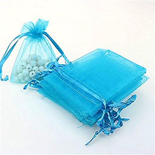 9X12cm 50pcs Drawstring Sheer Organza Wedding Gift Party Favor Jewelry Pouch Candy Bags (light blue)