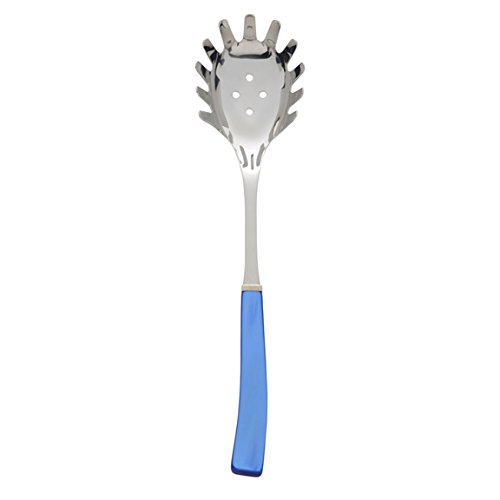 The gently curving handles of the Via Veneto collection were inspired by Via Vittorio Veneto in Rome. Via Veneto is one of the most famous, elegant and expensive streets in Rome, and is named after the Battle of Vittorio Veneto, a decisive Italian victory of World War I. The 1960 film La Dolce Vita by Federico Fellini immortalized the romance of life on the Via Veneto, home to some of Rome's most renowned cafes and five star hotels. Details Blue 11.75"long 18/10 Stainless Steel Handmade in Italy Dishwasher Safe with handles up