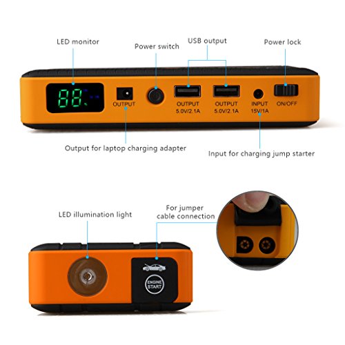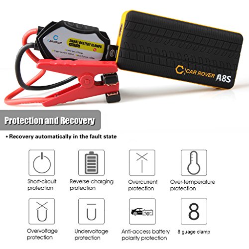 【Safety Protection】 The Smart Safety Clamps(with 8 gauge cable) has Over-current protection, Short-circuit protection, Overload protection, Over-voltage protection, Over-charge protection. It can prolong the jump starter lifespan.