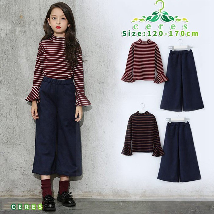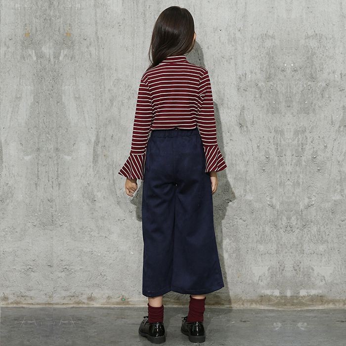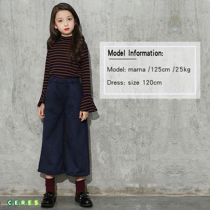 【製品仕様】■商品説明・トップス袖がフリルでアクセントに★・素材柔らか、チクチクしの心配なし!!・おしゃれ感満載のガウチョパンツはコーデュロイ素材◎ ■サイズ トップス 120cm: 肩幅:28cm バスト:33cm 袖丈:42cm 総丈:44cm 130cm: 肩幅:30cm バスト:34cm 袖丈:44cm 総丈:49cm 140cm: 肩幅:32cm バスト:36cm 袖丈:47cm 総丈:51cm 150cm: 肩幅:34cm バスト:38cm 袖丈:50cm 総丈:54cm 160cm: 肩幅:36cm バスト:40cm 袖丈:53cm 総丈:56cm 170cm: 肩幅:38cm バスト:42cm 袖丈:57cm 総丈:59cm ボトムス 120cm: ウェスト:25cm 総丈:65cm 130cm: ウェスト:26cm 総丈:70cm 140cm: ウェスト:27cm 総丈:75cm 150cm: ウェスト:28cm 総丈:80cm 160cm: ウェスト:29cm 総丈:85cm 170cm: ウェスト:30cm 総丈:90cm ■素材 トップス コットン 95% ポリウレタン 5% ボトムス コットン 75% ポリエステル 25% 伸縮性有り■色ネイビー、レッド