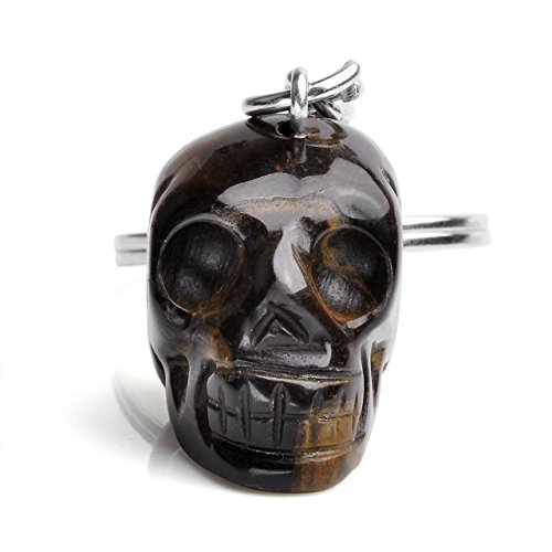 Top Plaza Rose Quartz Green Aventurine Tiger Eye Gemstone Carved 3D Skull Head Chic Keyring Keychain(Tiger Eye Stone+Synthetic Howlite)