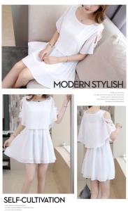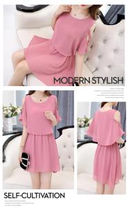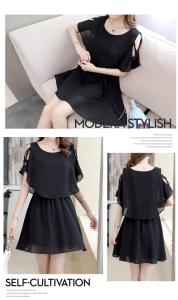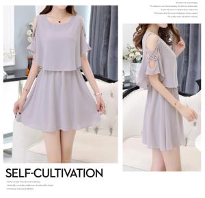 シフォンワンピース オープンショルダー クロスデザイン ミニ丈 フレア プチプラ 大人ガーリー シンプル 無地