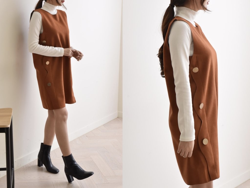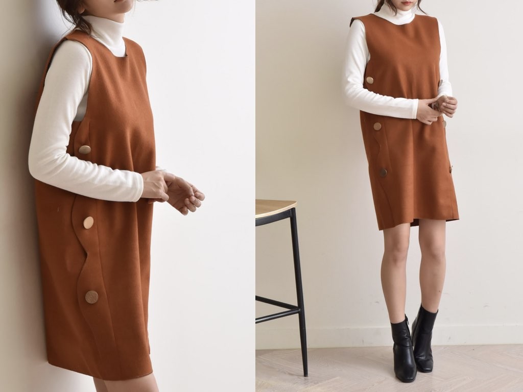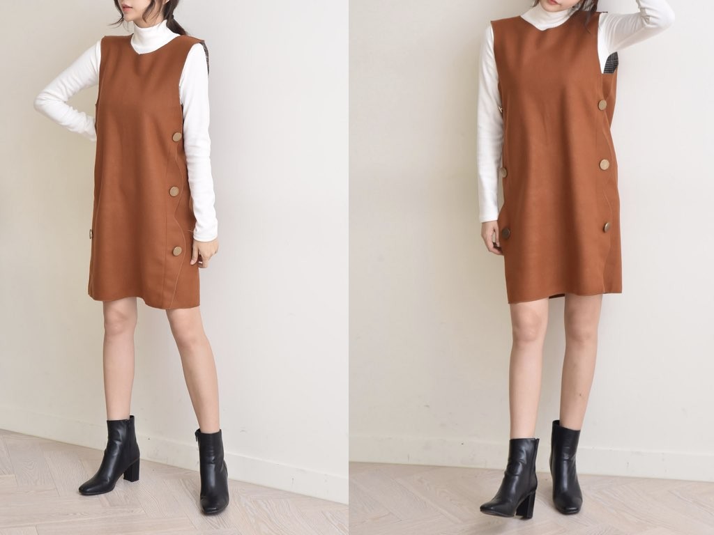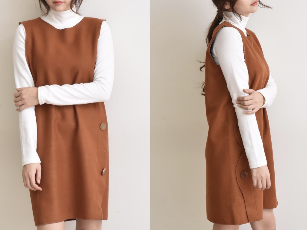 3色展開のワンピースです。さらりと着れてインナーとしても重宝するアイテムです。レギンス・ジーパンなどに合わせても、カワイイ商品です。商品は、とても丁寧なつくりとなっています。1.基本情報色:3色展開(濃グリーン/ブラウン/ネイビー)サイズ:Free素材:-製造国:Korea2.サイズ情報肩幅:37cm身幅(胸断面):49cm腕の長さ:22cm着丈(前):87cm(サイズは計る方法に応じて±2〜3cmの誤差があります。ご了承お願い致します)モデル着用サイズ:F※着用モデル(163cm、体重47kg、足のサイズ24.5cm)3.その他の情報厚み:中間透け感:なし伸縮性:なし裏地:なし洗濯方法:ドライ(クリーニング)[注意事項]お取り寄せ商品は、海外より仕入れるため納品まで約10日前後いただきます。また店舗でも販売しており、在庫切れになる場合もございます。ご了承お願い致します。