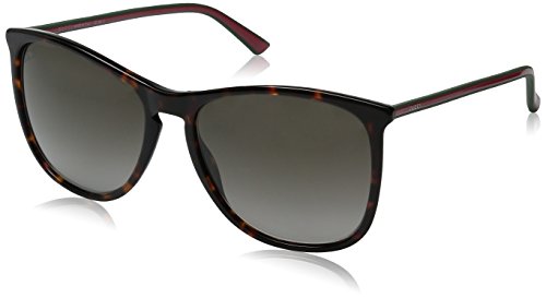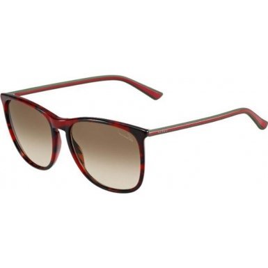Gucci Sunglasses, style GG3767 is a sleek rectangular plastic frame. The GG3767 features a saddle nose bridge and wire core adjustable temples for maximum comfort. The temples feature the Gucci Sunglasses logo. Gucci Sunglasses have lightweight scratch/impact-resistant lenses.