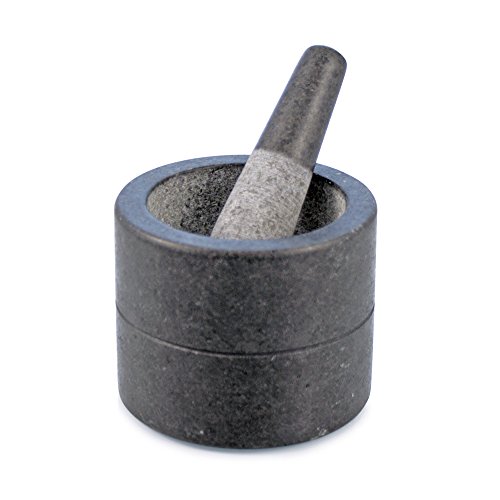 - Mortar is uniquely designed with dual-sided concave interiors for multiple grinding