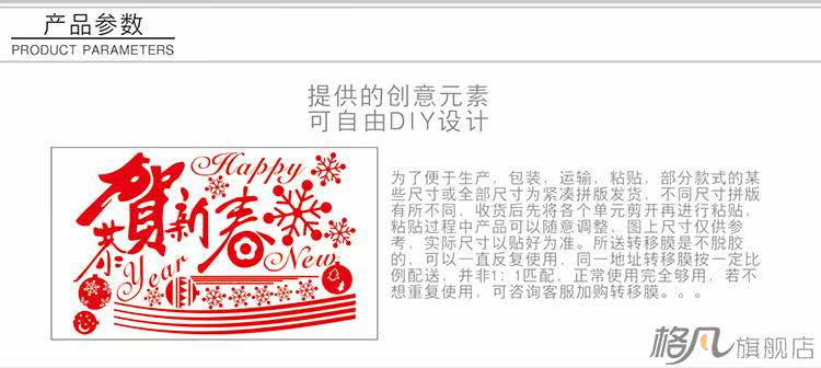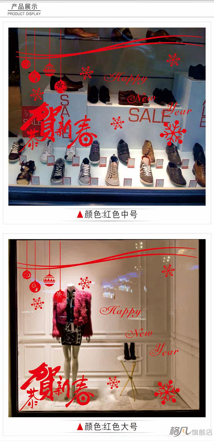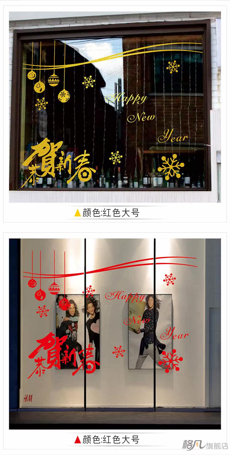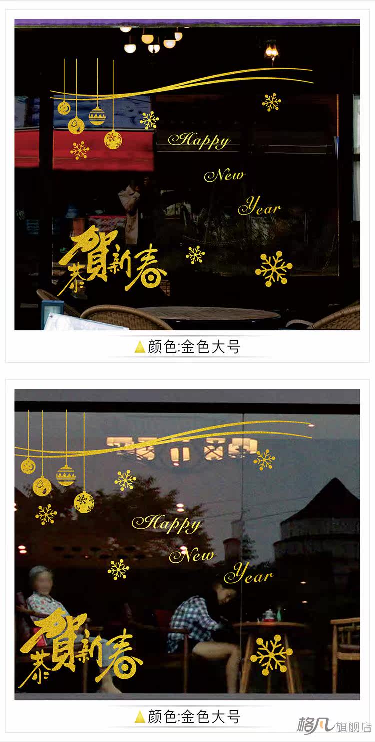 新年快乐金色玻璃墙贴纸迎新春新贺新春装饰店铺橱窗门狗年贴画