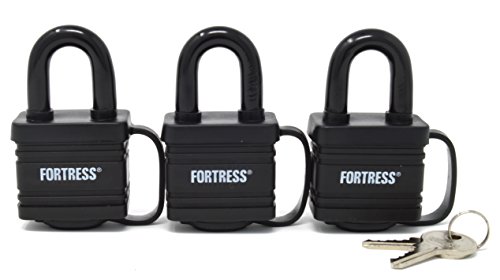 Master Lock 1804TRI Fortress Series Covered Laminated Weatherproof Padlocks, 1-9/16-Inch, Pack of 3