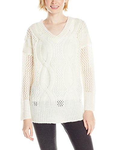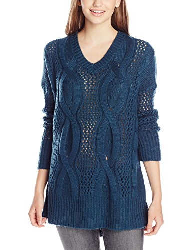 PINK ROSE Juniors' Long-Sleeve V-Neck Cable-Knit Top