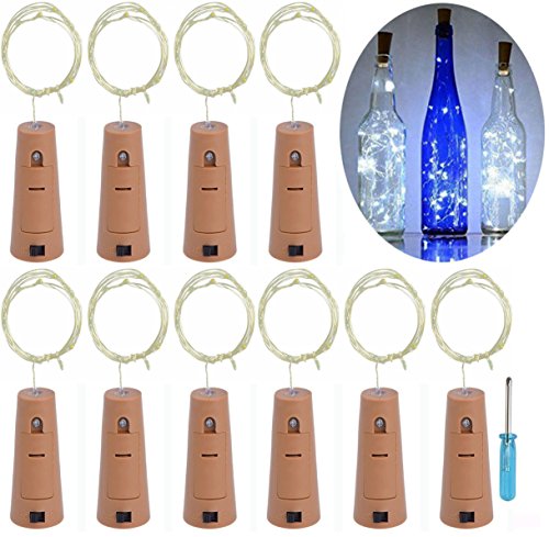 LRCXL Set of 10 Pure White Wine Bottle Cork Lights - 18inch/ 47cm 10 LED Silver wire Lights String Starry LED Lights for Bottle DIY, Halloween Party, Christmas, Wedding decoration. (10Pcs)