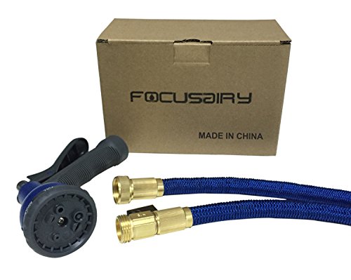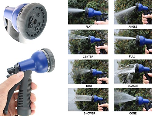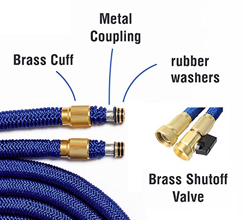 All solid brass fittings: The use of solid brass fittings makes the hose free from leaks and cracks that often come with plastic fittings. Built-in shut-off brass valve saves you endless trips to the faucet. The high quality spray nozzle with 8 adjustable patterns guarantees to satisfy all your watering needs, including garden and yard watering, car washing, home cleaning.