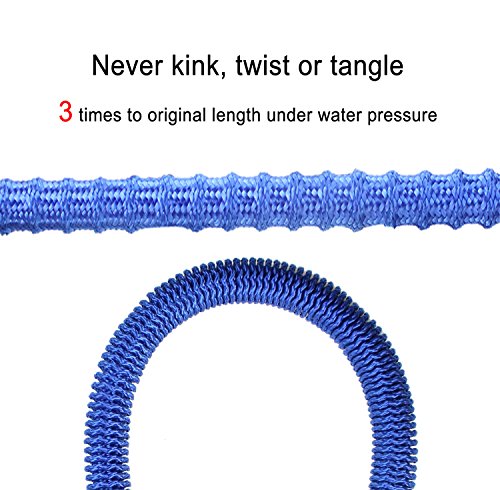 Compact design: using strongest material in the market, the tightly knitted outer fabric gives you visual enjoyment. It starts out 17ft and expands to 50ft with at least 5.88bar water pressure. Never kink and tangle. Lightweight, compact and space saver.