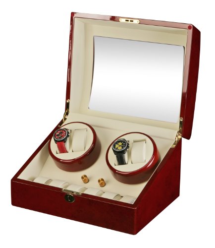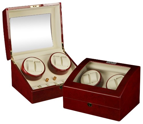 -. Binding : Watch -. Feature : Winds 4 watches on 2 turntables, with extra storage for 6 watches / Clockwise, auto swap or counter-clockwise rotations / 4 different program settings / included AC adapter power 110-240V / Front and top see-through windows -. Label : Diplomat -. Manufacturer : Diplomat -. MPN : 689466302509 -. PartNumber : 689466302509 -. ProductGroup : Watch -. ProductTypeName : WATCH -. Publisher : Diplomat -. SKU : B003IR3PYU -. Studio : Diplomat -. Title : Burgundy Wood Finish 4 Watch Winder With 6 Additional Watch Storage Spaces, Two Turntable With 4 Program Settings.