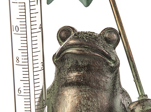 Evergreen Garden Decorative Polystone and Metal Frog Statue with a Glass Rain Gauge - 4"W x 4"D x 18"H