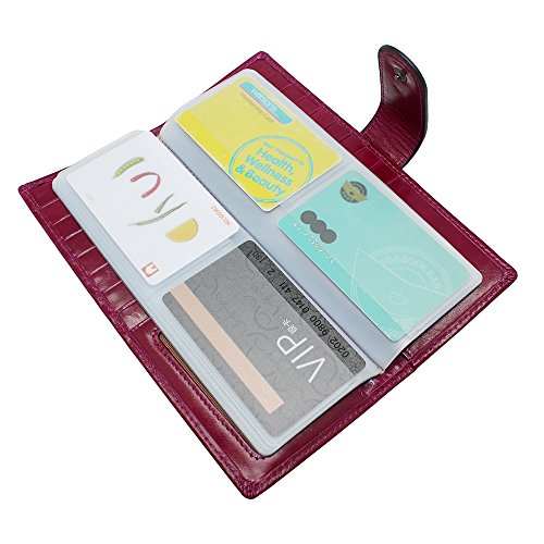 40 see-through card pockets & 16 leather card slots - Provides ample room to store your credit cards, business cards, gift cards, store cards, loyalty cards and more