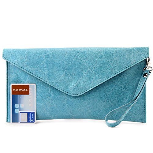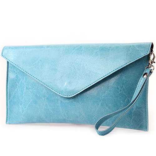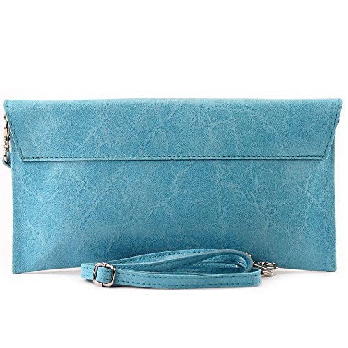 Modamoda de - italian Leather bag Clutch underarm bag Evening bag Wrist bag Wrist bag Smooth leather T106G, Color: Light blue
