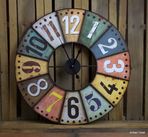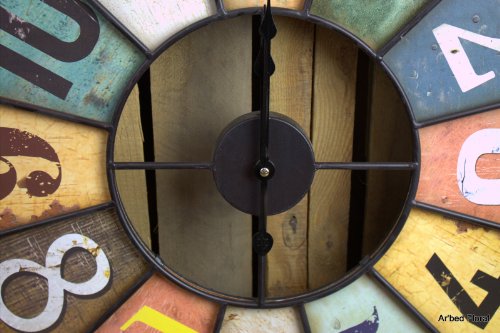 -. Title : 23" Large Colored Industrial Style Wooden / Metal Wall Clock Iron Metal