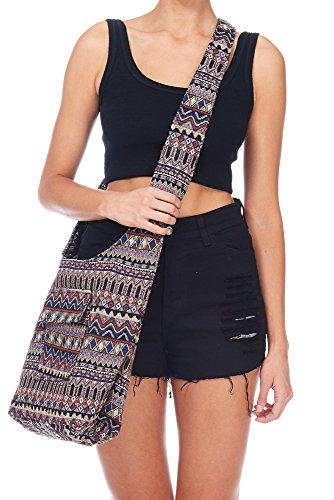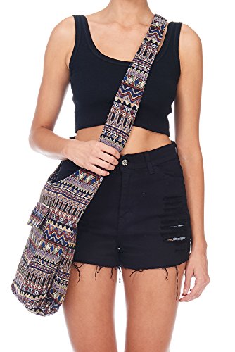 BYSUMMER Tribal Striped Ethnic Boho Sling Shoulder Thai Pattern Crossbody Bag
