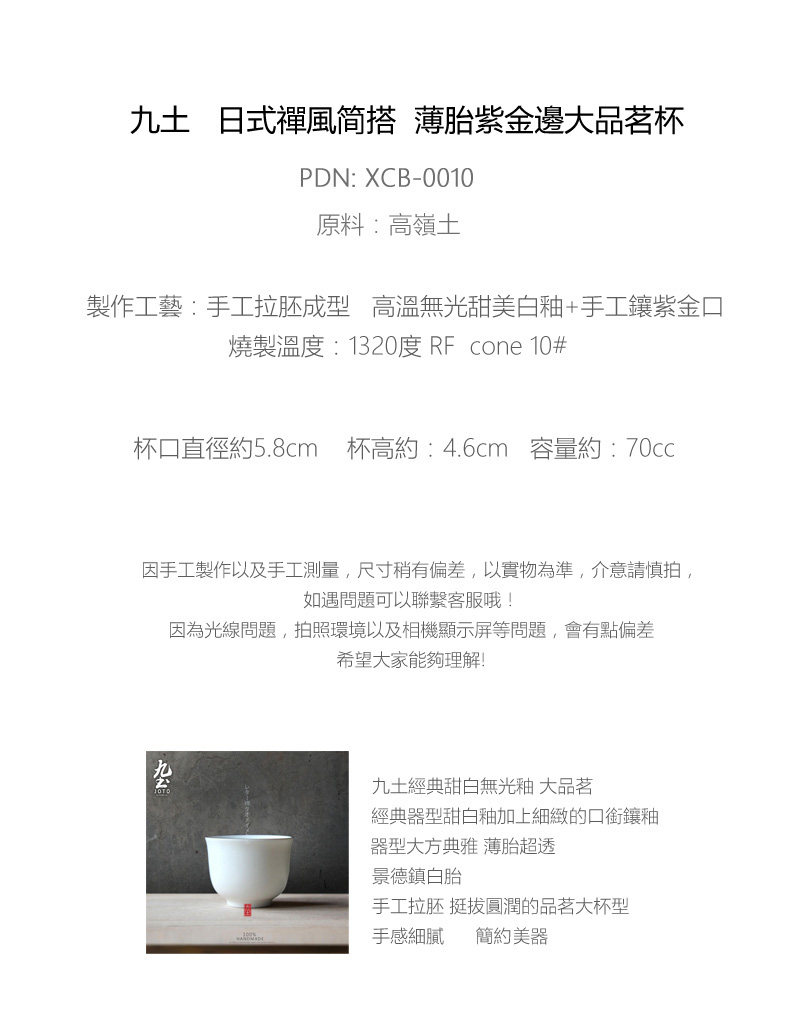 手工品茗杯景德薄胎小茶杯 日式茶道主人杯中式功夫茶具