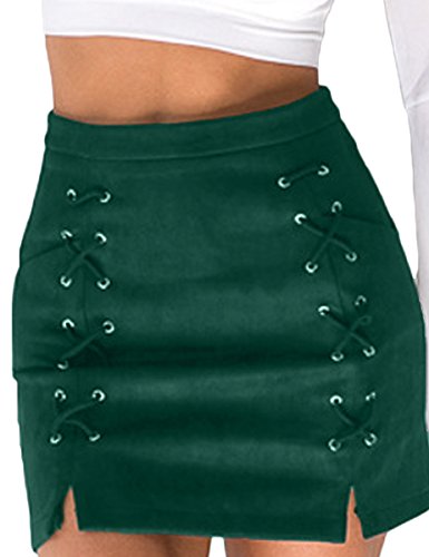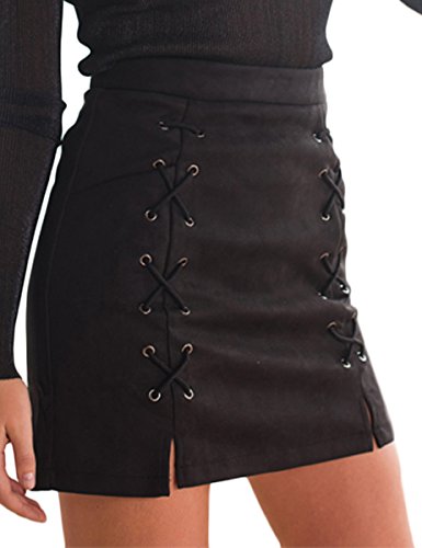 -. Title : Prograce Women Sexy Criss Cross Tight Bodycon Faux Suede Stretch Mini Skirt