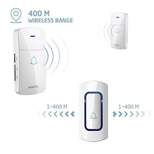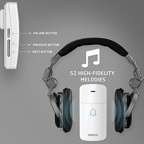 AVANTEK Wireless Doorbell Operating at Over 1,300 Feet with 2 Plug-In Receivers, 52 Melodies to Choose From