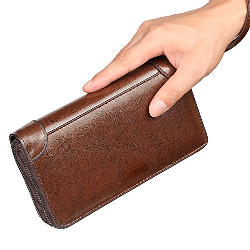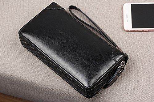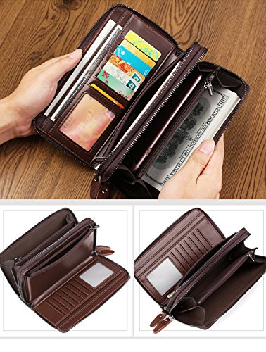 Binding : Apparel Product Description Descripation: Main Material:Genuine leather, Gender: Men, Boys Color:Black,Brown available size:20*12*5cm Closure type:Two Mian zippers Compartment with one Hand band Inside Detail: Credit card inserts, ID window card,Checkbook holder, cash and zipper change layer Note: All the pictures are true shooting ,but because of the impacted by lighting and different screen ,shown is a little bit color different. All the size,is manual measurement ,please allow 1-2 cm error ,thanks. Please allow the smell in the course of packing and shipping, but it will be disappeared in a few days air out.
