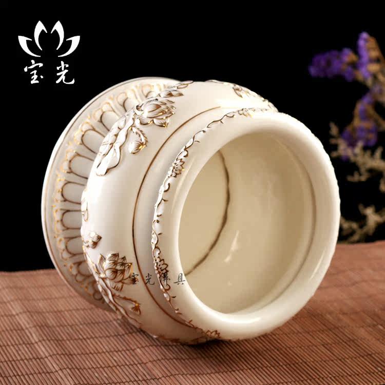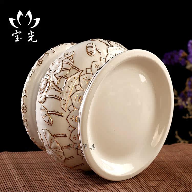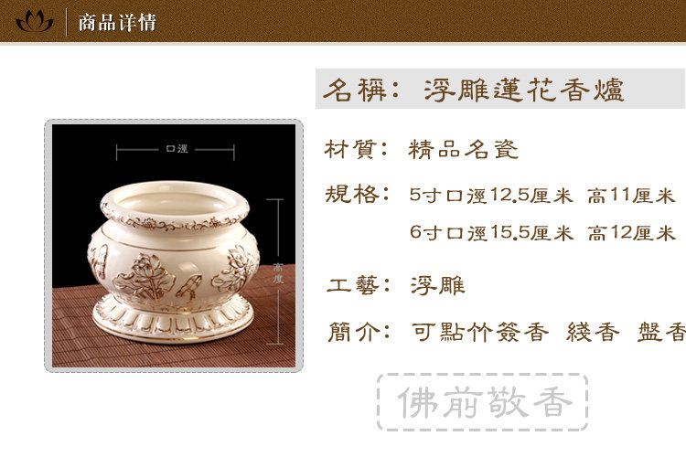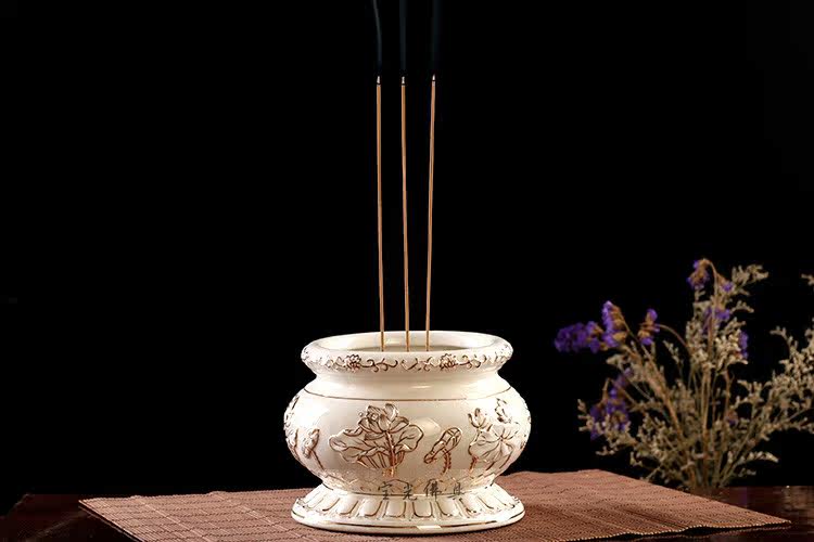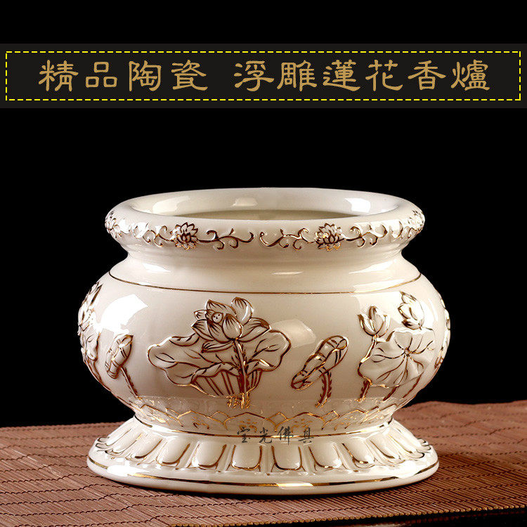 宝光佛具供佛香炉陶瓷浮雕描金莲花香炉檀香炉香插竹签香熏炉供具