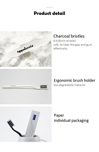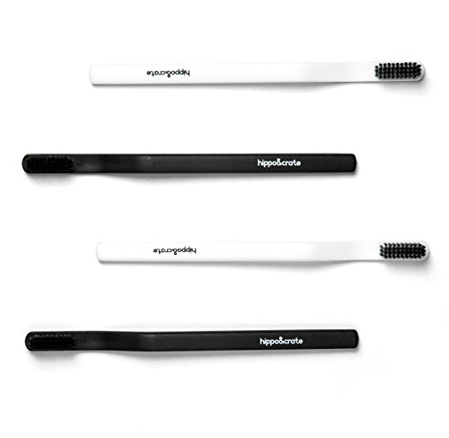 Hippo&Crate Dentist Approved Toothbrush with Charcoal Binchotan bristles Pack of 4 For Sensitive Gums