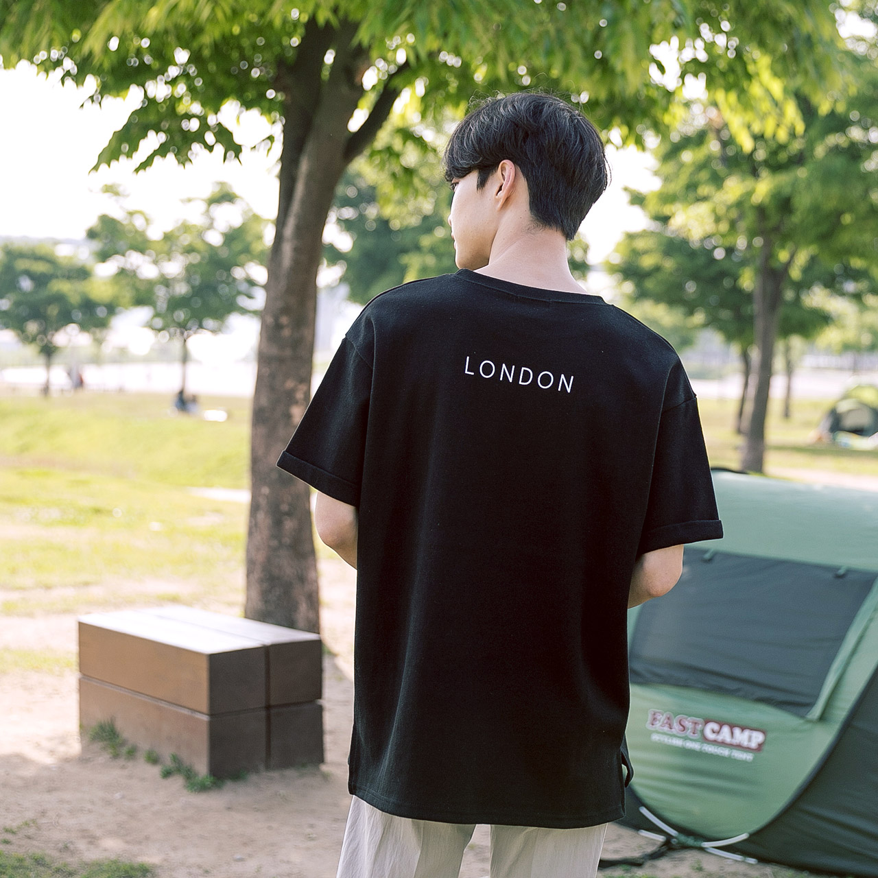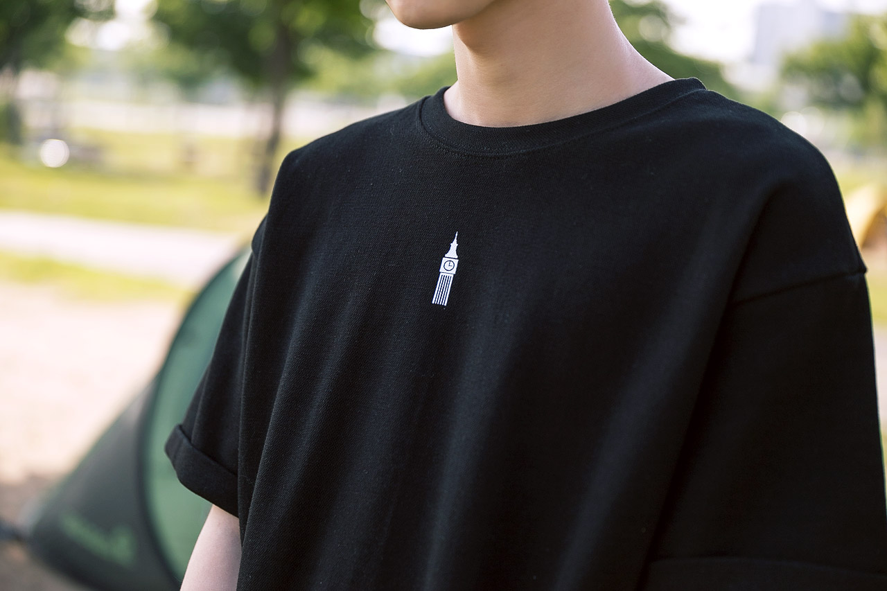 프론트 미니멀한 프린팅으로 포인트를 주어 위트있게 연출하기 좋습니다.