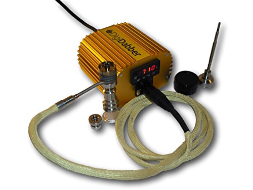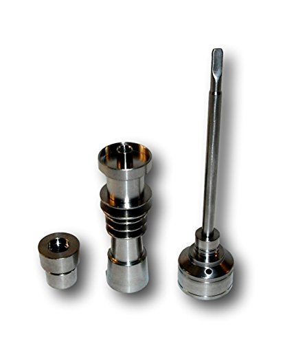 Complete setup includes e-nail & enclosure, heater coil, power cord, and: Titanium universal 14/18m male & female nail (grade 2) (glass adapters not included), Oil tool and carb cap, FREE Silicone oil container jar.