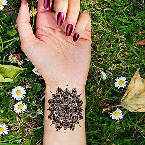 Tattify Small Floral Mandala Temporary Tattoo - Flowerage (Set of 2) - Other Styles Available and Fashionable Temporary Tattoos - Tattoos that are long lasting...