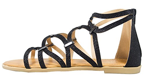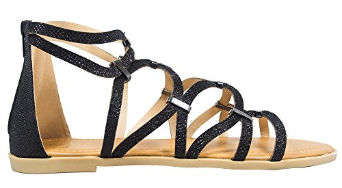 BF Betani Women's Metallic Glitter Cutout Gladiator Flat Sandal