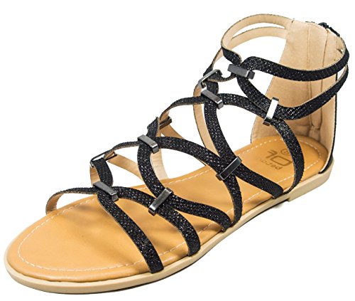 Product DescriptionBF Betani Women's gladiator flat sandal features metallic glitter grommet details, zip back closure non skid sole. Imported.0