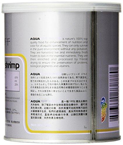 AquaOne Shrimp is nature's 100-percent top quality food for enhancement of nutrition and color for all aquatic species. They can only survive in the pure environment without any pollution. They are harvested live and immediately fresh frozen to lock in essential nutrients. They are then enriched and processed by freeze drying to ensure the preservation of proteins, biological pigments and vitamins.Feature