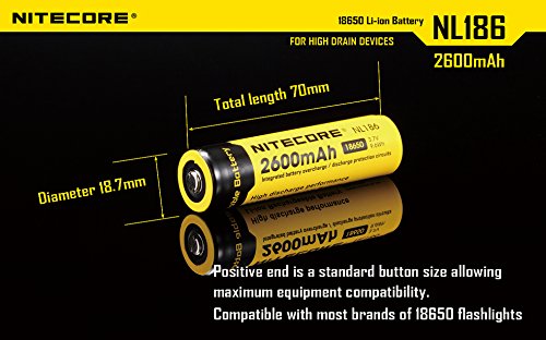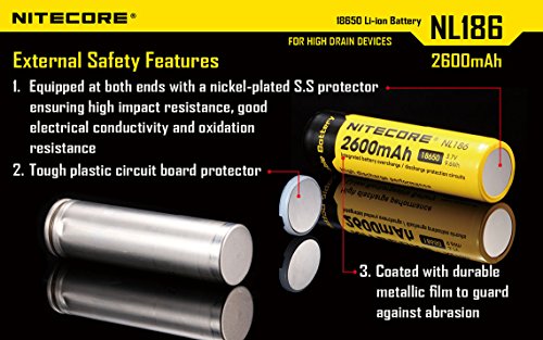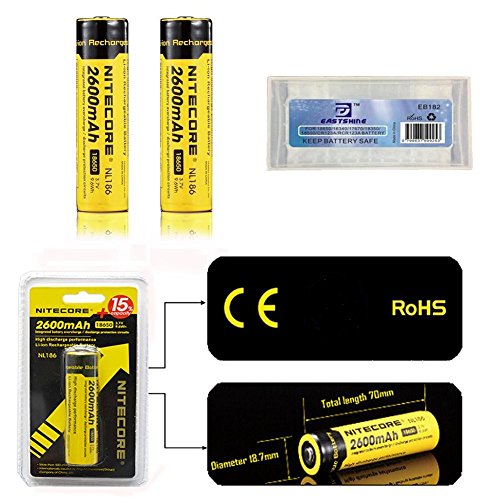 Bundle:Nitecore Nl186 18650 Li-ion Rechargeable Battery 2600mAh 3.7V 8.5Wh CE RoHS Certification (2*NL186 2600mAh Battery +1*EASTSHINE Battery Box)