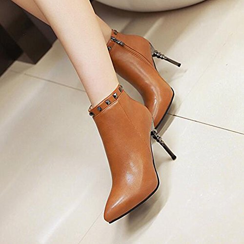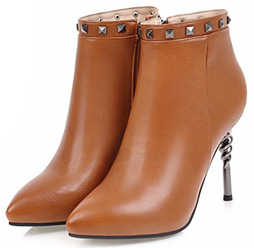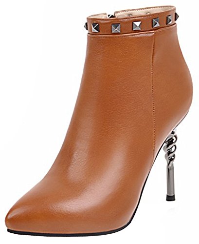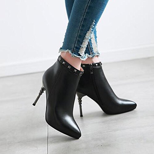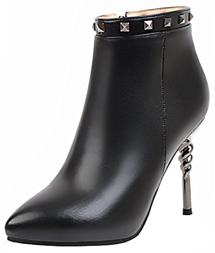 (Mofri)/Women's/Boots/DIRECT FROM USA/Mofri Women's Studded Rivets Ride Zipper OL Work Ankle Booties Pointed Toe Stiletto High Heel S...
