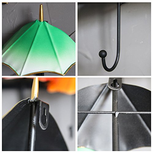-. Feature : Size: 7.87L)x6.30(W)3.54(H)inch, Product weight:0.19 lb Provides an abundance of space for hanging items and getting organized. / Perfect for organizing any entryway or foyer. / An interesting hook, which is designed to umbrella shape, hanging on the wall show the Mediterranean ambience / Made by the tinplate, load-bearing capacity better, anti-rust treatment / Hang and store your hats, coats, purses and more