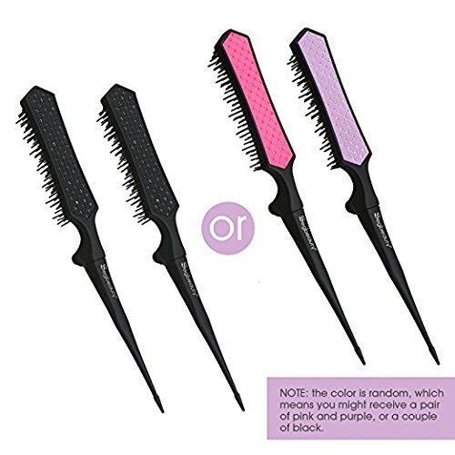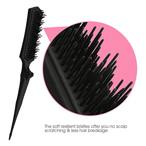 - 3-Tier stagger length soft resilient combing teeth not only excellent for detangling, backcombing, teasing, flugging, feathering and finishing hair styles to add height and volume for big styles, but also aid in penetrating and lifting hair and contoured to fit the shape of the head.
