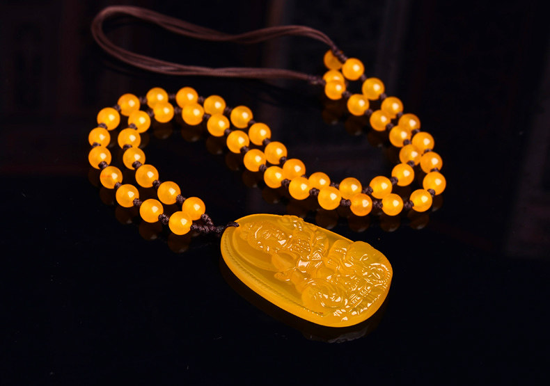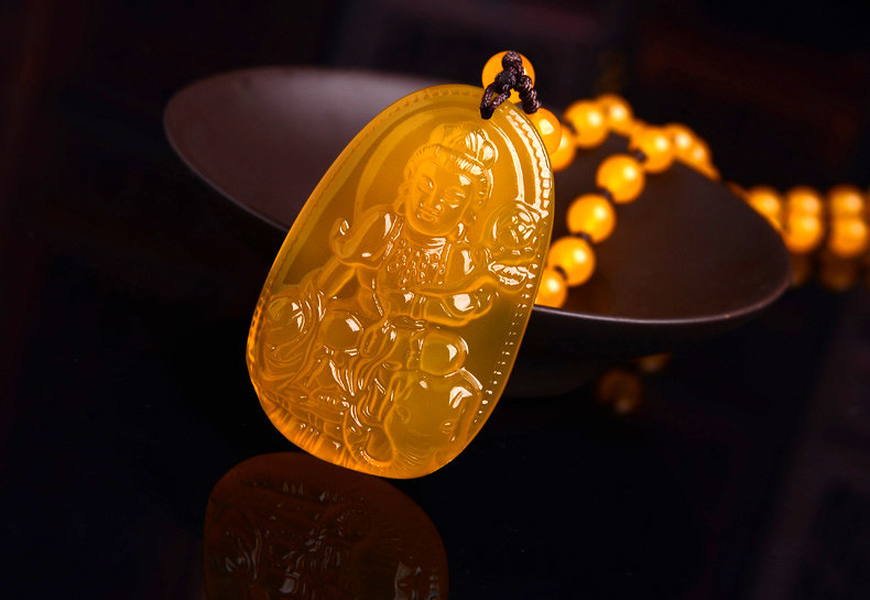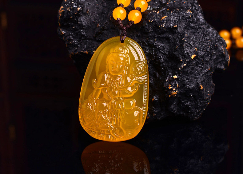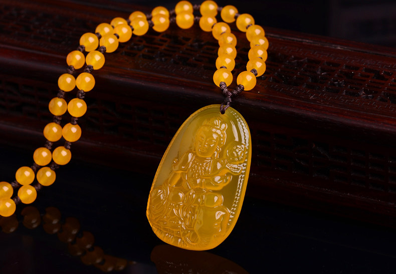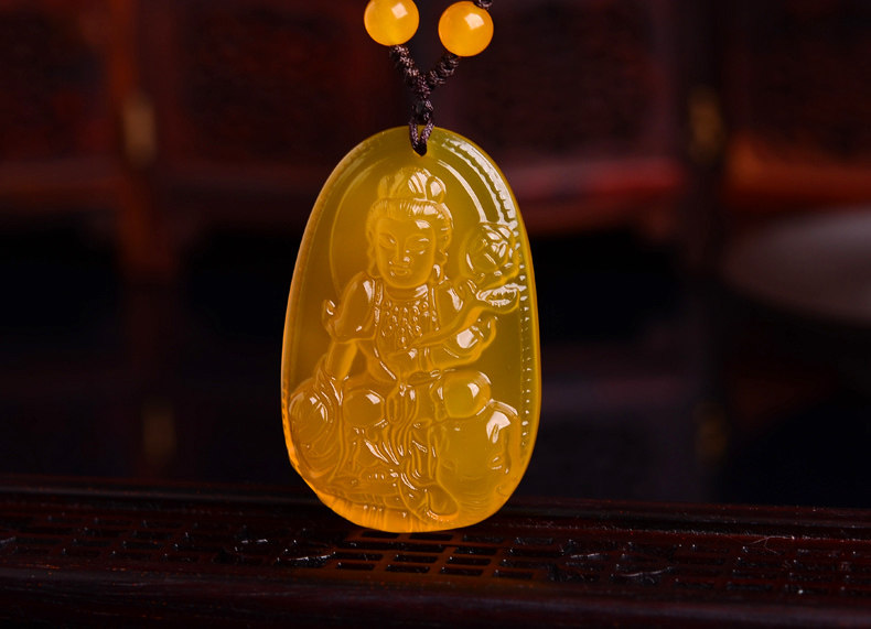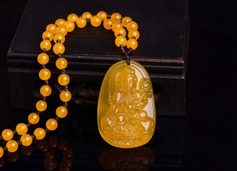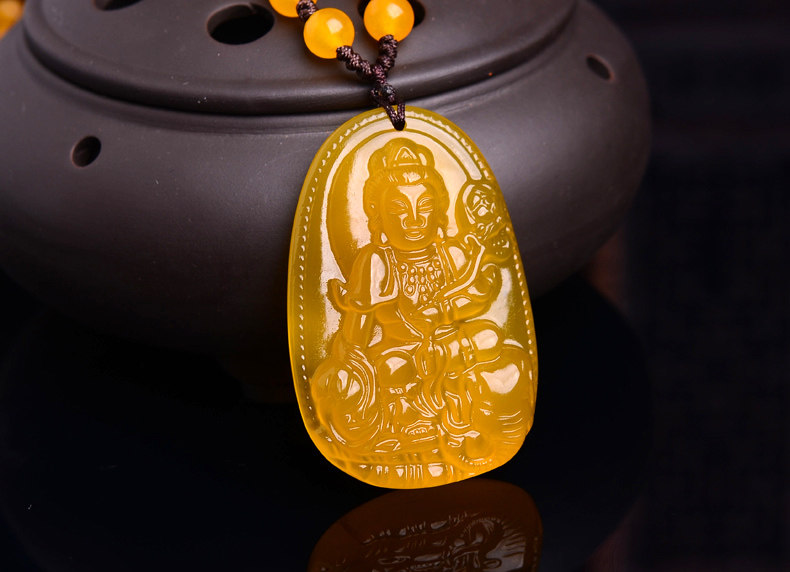 开光天然黄玉髓普贤菩萨吊坠 生肖属龙蛇终生守护神本命佛项链