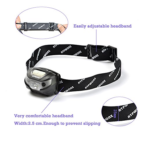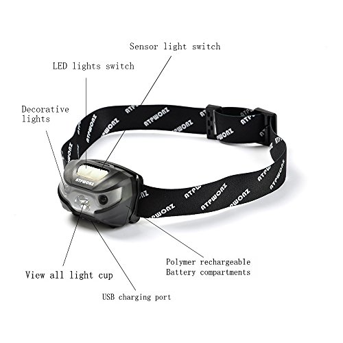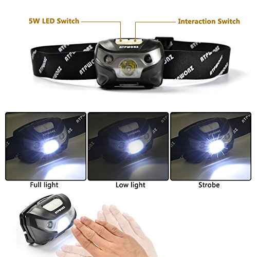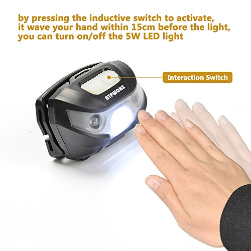 【Multiple Modes Head Torch】White light: low beam,driving beam and flashing; Hand movement IR sensor: pressing the inductive switch, wave your hand within 15cm before the light to activate