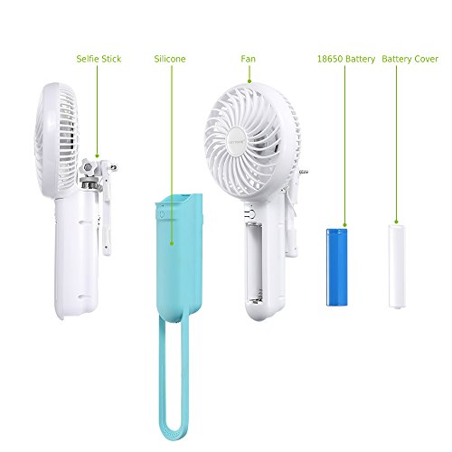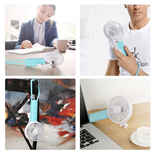 The handle of the rechargeable fan is made with soft silicone material, when you use it, it feels smooth and comfortable. It is designed with a hanging loop, then you can use it with hands-free and carry it more convenient