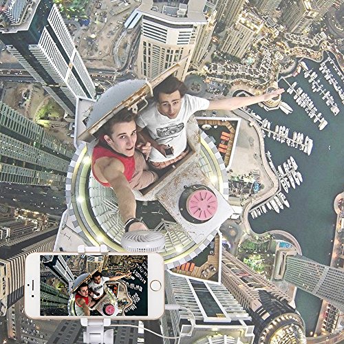 The selfie stick works with most iOS/Android smartphones such as iPhone 6Plus/6s/5s and Samsung galaxy Note Edge etc. It can be stretched up to around 24 inch. Thanks to its adjustable head, you can set your smart phone in 360 degrees to gain the best angle and help you get whatever shot you need